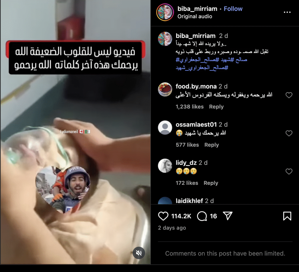كما ونشرت الفيديو ذاته جريدة زمان الوصل بتاريخ 27\6\2023 مرفقًا بالعنوان التالي: “شاب سوري يردد الدعاء قبيل وفاته بلحظات في ريف حلب الشمالي”.