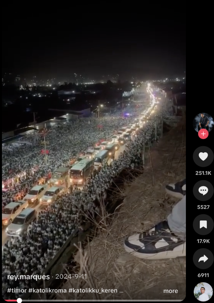 نشر حساب يحمل اسم rey.marques الفيديو على منصة تيك توك بتاريخ 11/9/2024، مرفقًا بالوصف: “وصول البابا فرنسيس إلى تيمور الشرقية”.