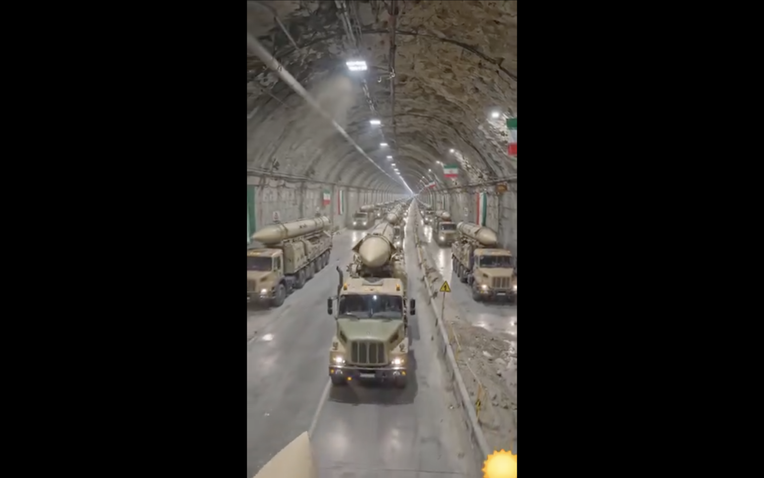 نشرت حسابات على مواقع التواصل الاجتماعي مقطع فيديو يظهر فيه استعراض عسكري لصواريخ على مركبات عسكرية داخل نفق علّقت عليه أعلام إيران، مع الادعاء أن الفيديو حديث لاستعراض عسكري في إيران. وأُرفق الفيديو بالوصف التالي: “الليلة التاريخية قد تبدأ خلال ساعات من الآن، صواريخ عملاقة سوف تنزل دون توقف على تل أبيب”.