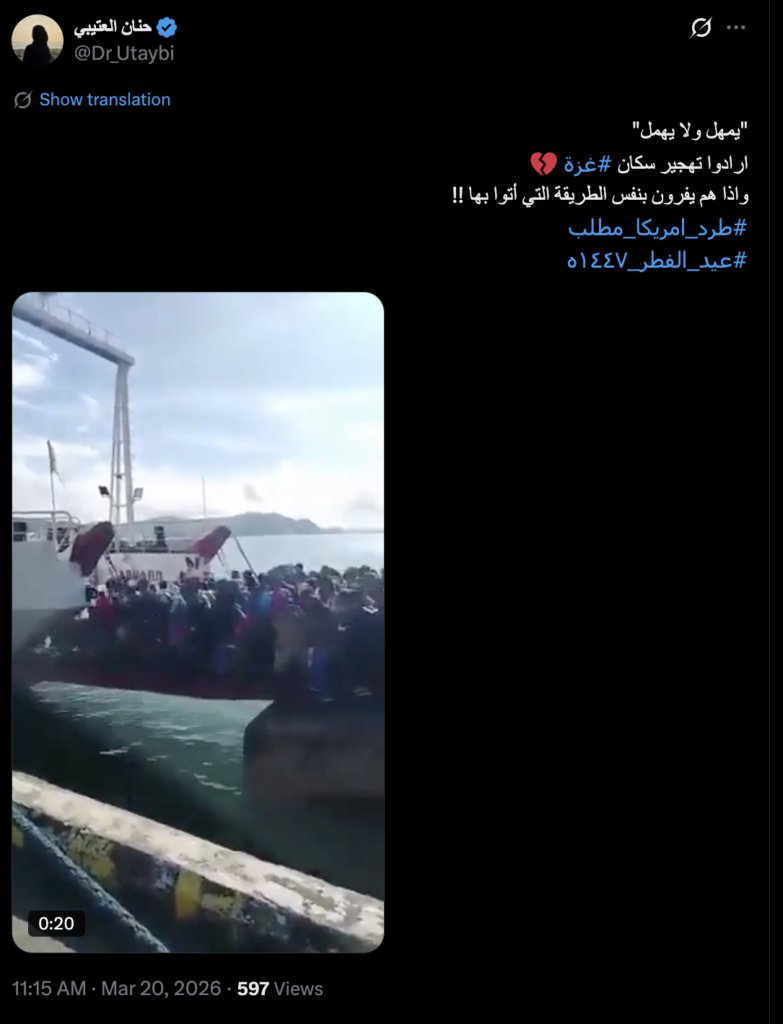 نشرت حسابات على مواقع التواصل الاجتماعي مقطع الفيديو يظهر مجموعة من الأشخاص يصعدون على متن سفينة، مع الإدعاء أنه رحلات هروب جماعية من تل أبيب إلى قبرص، حيث أرفق الفيديو بالوصف التالي: “يمهل ولا يهمل أرادوا تهجير سكان  غزة، وإذا هم يفرون بنفس الطريقة التي أتوا بها”.
