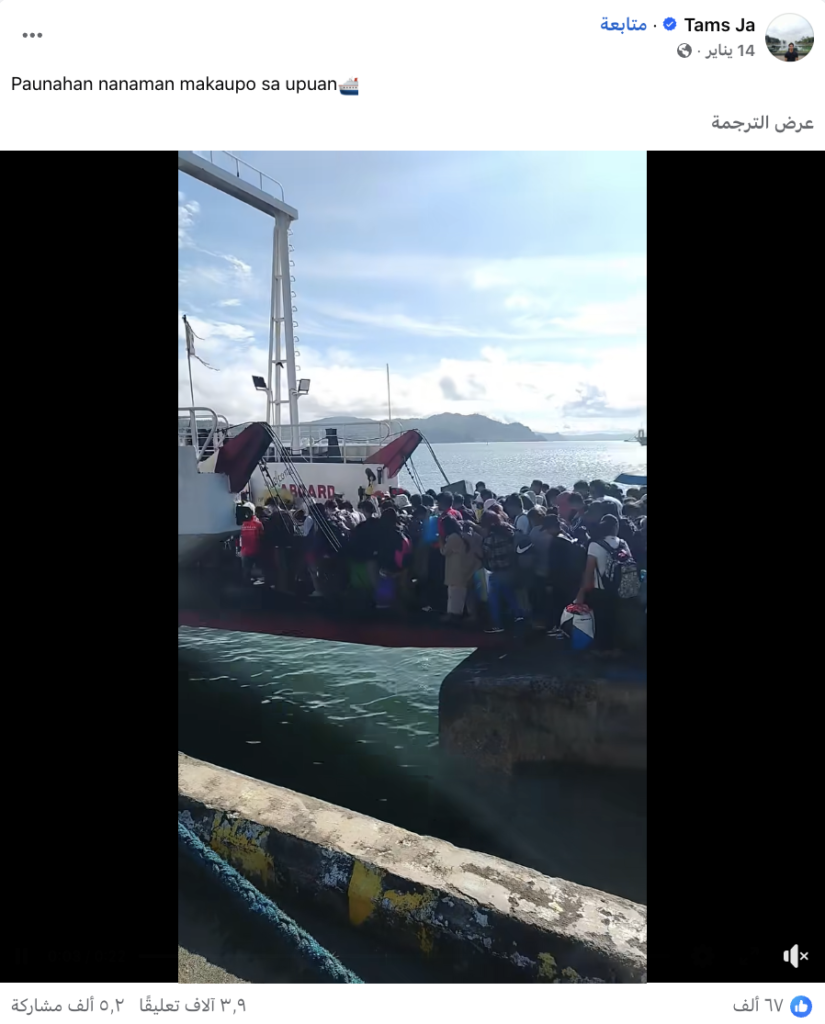 حيث نشر صانع المحتوى الفلبيني Tams Ja  مقطع الفيديو على حسابه على منصة فيسبوك بتاريخ 14\1\2026، موثقا لحظة صعود مجموعة من المواطنين الفلبينيين على متن سفينة، مرفقاً بالوصف التالي: “عادوا ليتسابقوا على من يجلس أولا على الكرسي”.