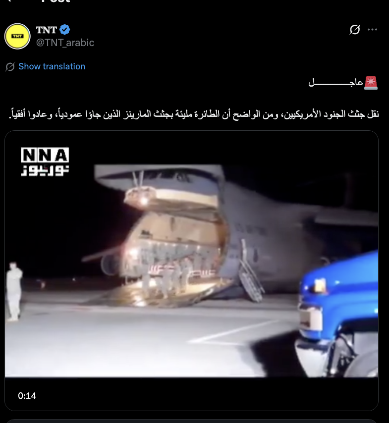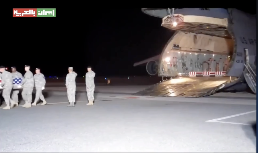 نشرت حسابات على مواقع التواصل الاجتماعي مقطع فيديو يُظهر عدداً من الجنود الأمريكيين وهم ينقلون جثامين داخل توابيت من طائرة قيل إنها كانت مليئة بالجثث، مرفقاً بادعاء أن المقطع يوثق وصول جثامين جنود أمريكيين قُتلوا في هجمات إيرانية على القواعد الأمريكية في الخليج إلى واشنطن. حيث جاء في الادعاء “لأول مرة منذ الانسحاب من أفغانستان، بدأ الجنود الأمريكيون يعودون في توابيت من الشرق الأوسط، ومن خلال الصورة يتضح أن الطائرة مليئة بجثث المارينز الذين جاؤوا عمودياً وعادوا أفقياً”.