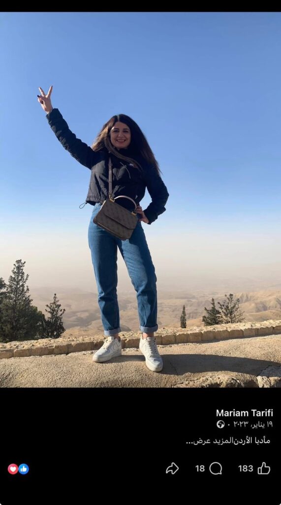 انتشرت على مواقع التواصل الاجتماعي ومجموعات الواتساب معلومات مع الادعاء أن الأجهزة الأمنية الفلسطينية اعتقلت الصحفية مريم الطريفي بسبب تعليق حول الأردن عبر منصة فيسبوك، وجاء في نص الادعاء: “الأجهزة الأمنية تعتقل الإعلامية مريم الطريفي، وتلفزيون فلسطين الذي تعمل فيه يوقفها عن العمل بعد انتقادها لدور الأردن في الحــــــرب الجارية في المنطقة، كون الأردن يعمل على حماية الاحتلال، ومنصةً للتصدي للهجمات وتلقيها عنه، في الوقت نفسه الذي يشن فيه نشطاء الأردن حملة على الفلسطينيين ويهاجمونهم”.