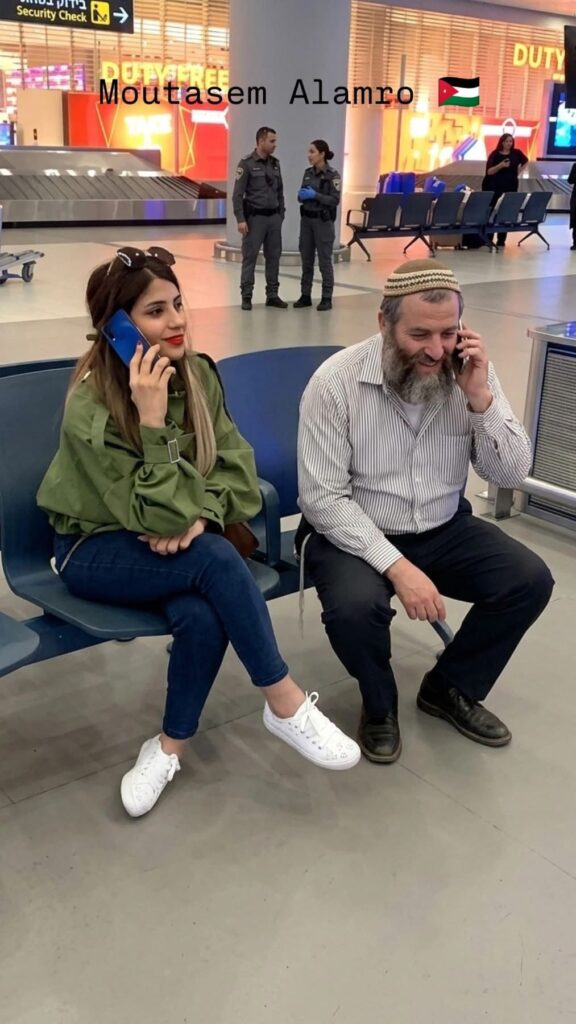 كما انتشرت صورتان  لها؛ الأولى تظهر فيها واقفةً وبجانبها جندي من جيش الاحتلال، والثانية تظهر فيها جالسةً وبجانبها مستوطن.