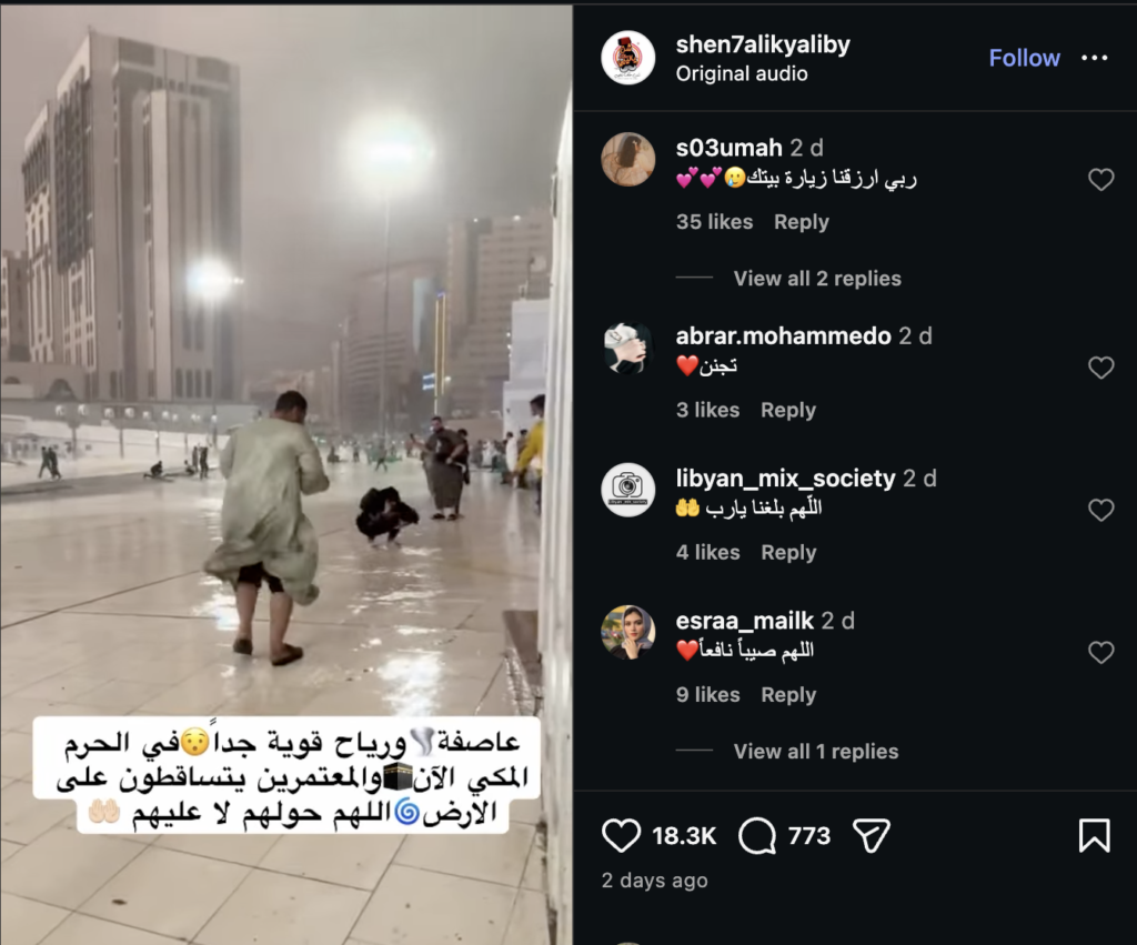 تحقق مرصد كاشف من صحة الفيديو ووجد أنه مضلل. ولم يكن عاصفة في الحرم المكي بتاريخ 9/12/2025.